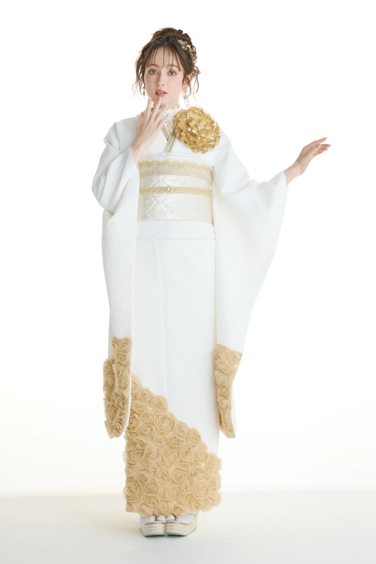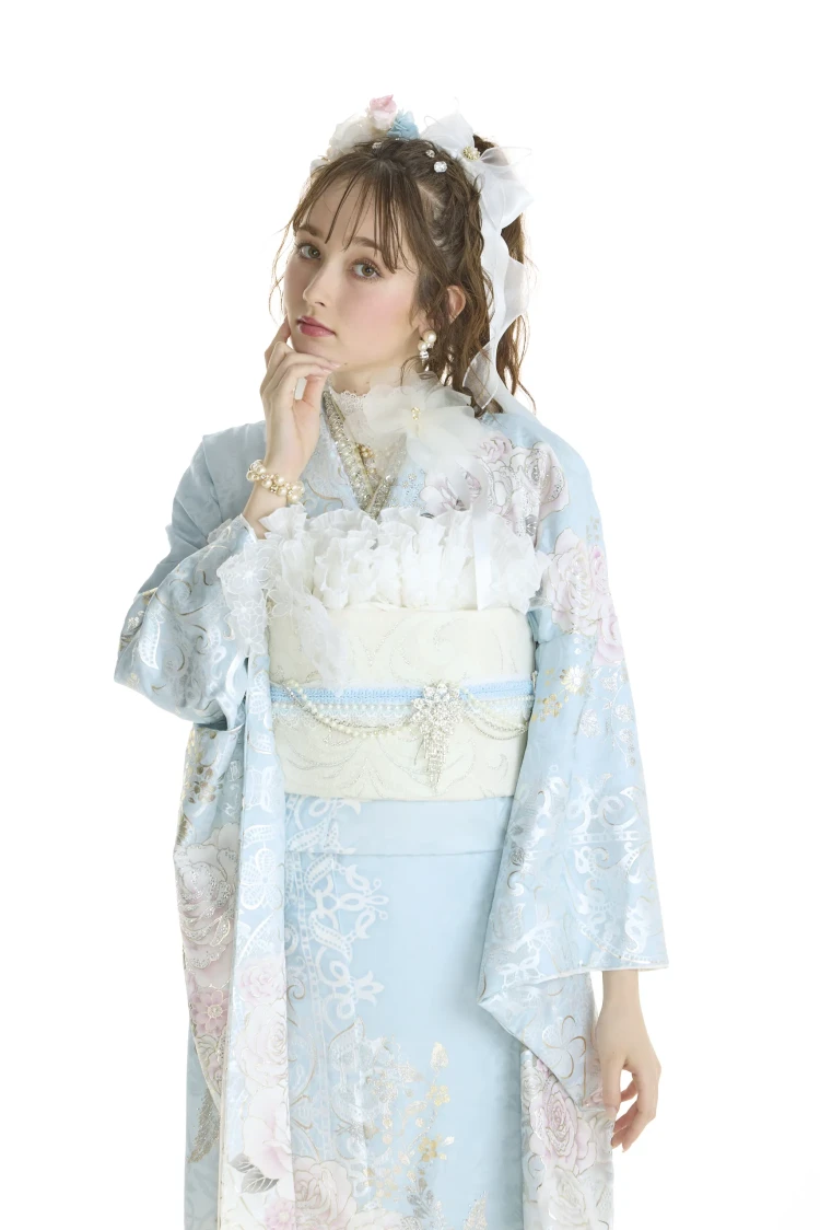 オートクチュールドレスのように気高くエレガント。ヨーロッパハイブランドから取り入れたテイストやデザインを、高級ドレス仕立の素材で。すべてにワンランク上の贅を尽くし、新しい価値観から生まれた世界でここにしかない振袖が誕生