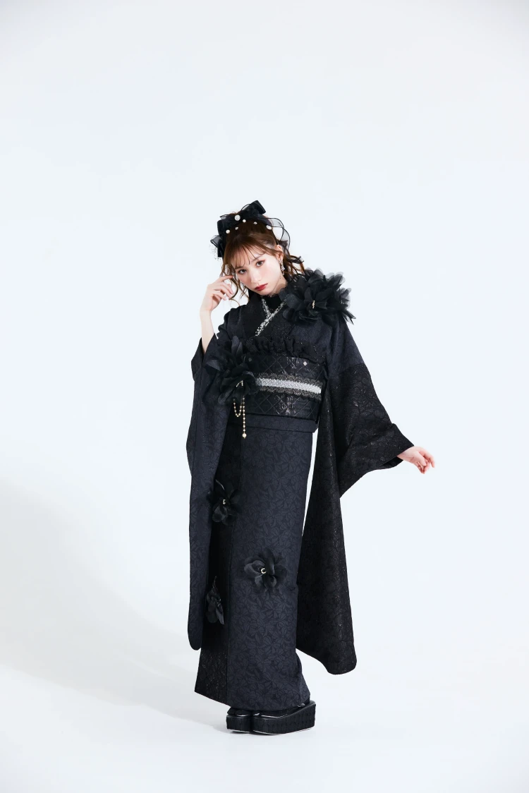 オートクチュールドレスのように気高くエレガント。ヨーロッパハイブランドから取り入れたテイストやデザインを、高級ドレス仕立の素材で。すべてにワンランク上の贅を尽くし、新しい価値観から生まれた世界でここにしかない振袖が誕生