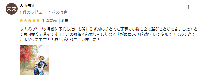 成人式振袖ネットレンタル お客様 口コミ