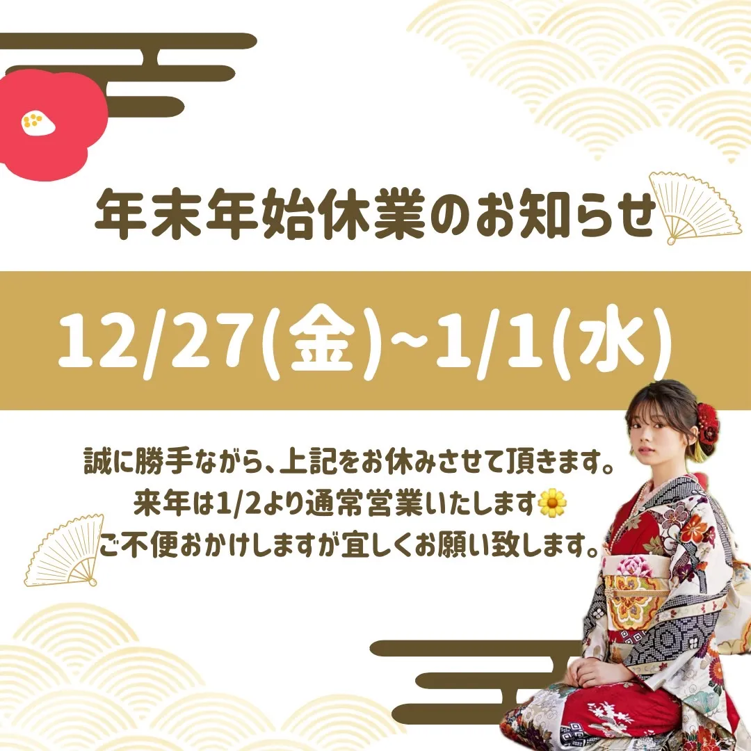 Facebook Pixel 年末年始休暇のお知らせ|成⼈式の振袖ネットレンタルならFURISODE DOLL(フリソデドール)【全国対応】by TAKAZEN FURISODE DOLL