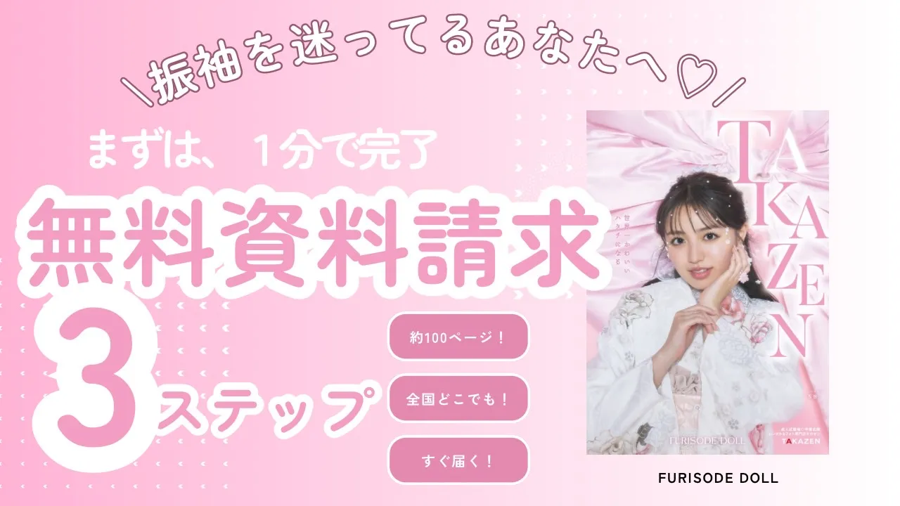 Facebook Pixel 成人式振袖の無料カタログ🎀簡単3ステップで振袖の可愛いが詰まった一冊がすぐ届く✨|成⼈式の振袖ネットレンタルならFURISODE DOLL(フリソデドール)【全国対応】by TAKAZEN FURISODE DOLL