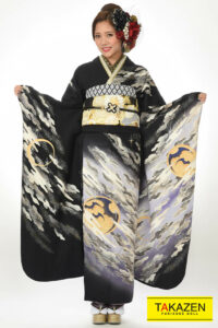 誰かの色になんて染まらない。自分を貫きわが道へ。柄×箔と一番目立つ派手で渋い孔雀・鳳凰・龍・虎・鯉のいかつい柄でかっこよく。ゴージャスで大人気のキラキラ振袖シリーズ。
