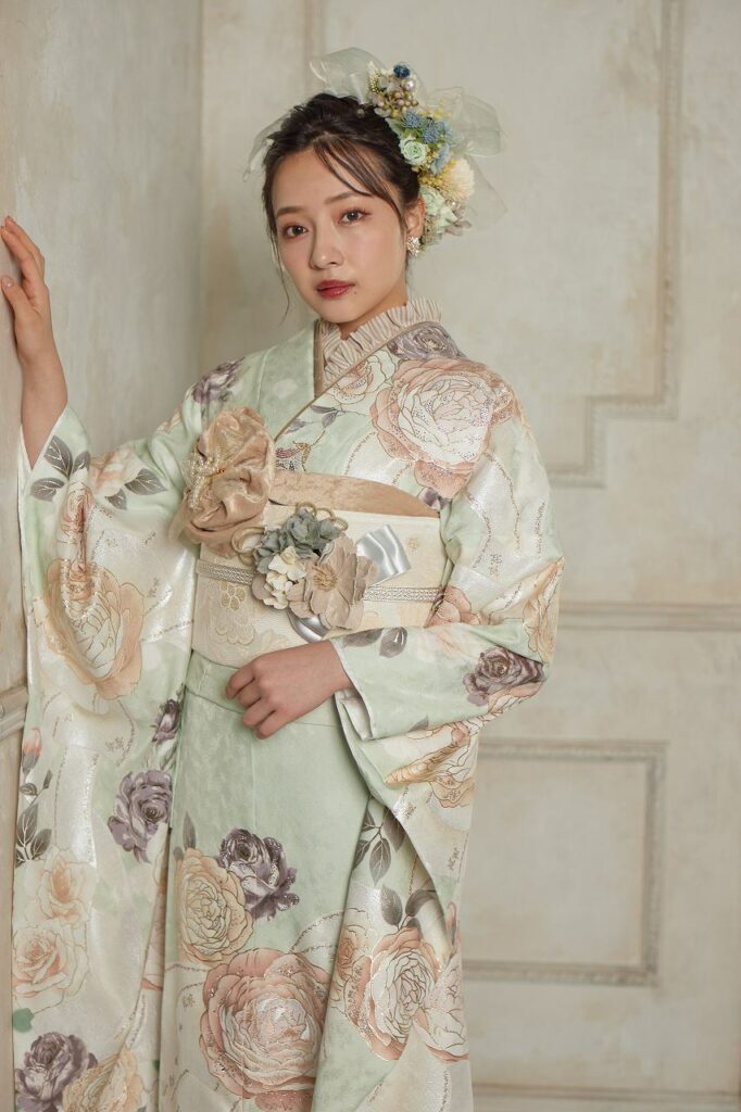 くすみカラー大人気のくすみカラー振袖でずっとかわいい女の子でいたい。儚げな淡い色合いが透明感を引き出してくれる。トレンドに敏感なおしゃれな女の子にぴったり♡