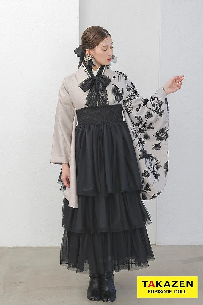 ブラックレーベルオートクチュールドレスのように気高くエレガント。ヨーロッパハイブランドから取り入れたテイストやデザインを、高級ドレス仕立の素材で。すべてにワンランク上の贅を尽くし、新しい価値観から生まれた世界でここにしかない振袖が誕生