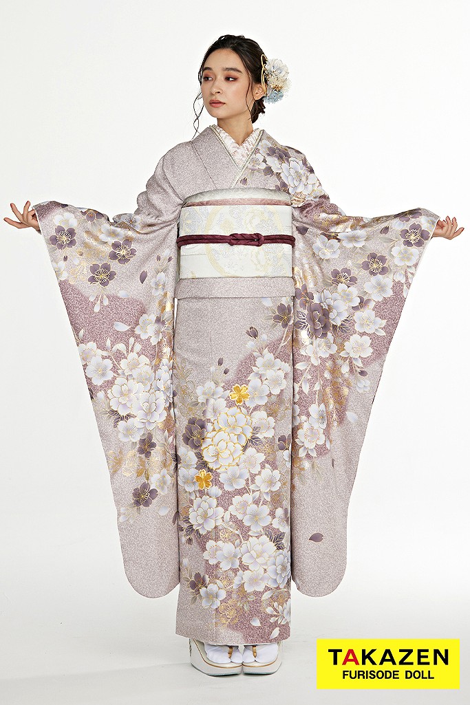 • 振袖・袴以外の帯・半襟・小物など、一部撮影用の小物を使用しているため、モデルのコーディネートから変更させていただく場合がございます。