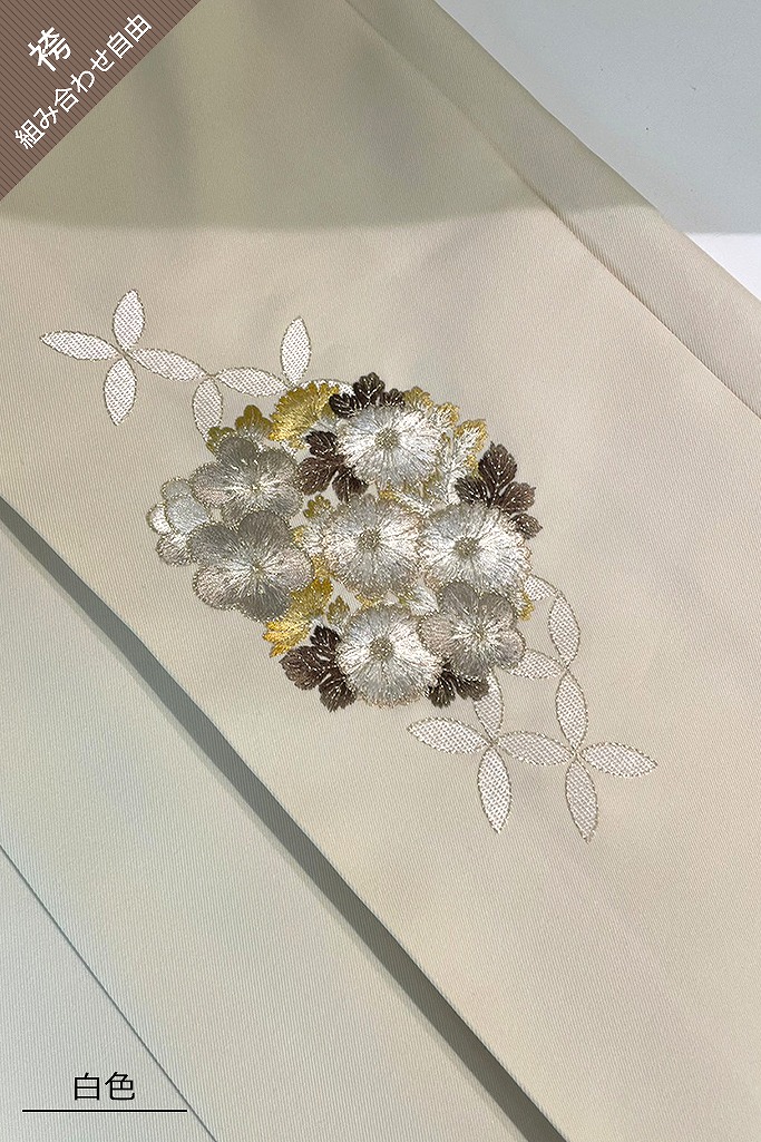 | ⑤半衿 | 襦袢に付いています。半衿は通常白衿になります。柄付き(刺繍衿)がご希望の場合は、ご注文内容最終確認ページ備考欄にご記入下さいませ。 |