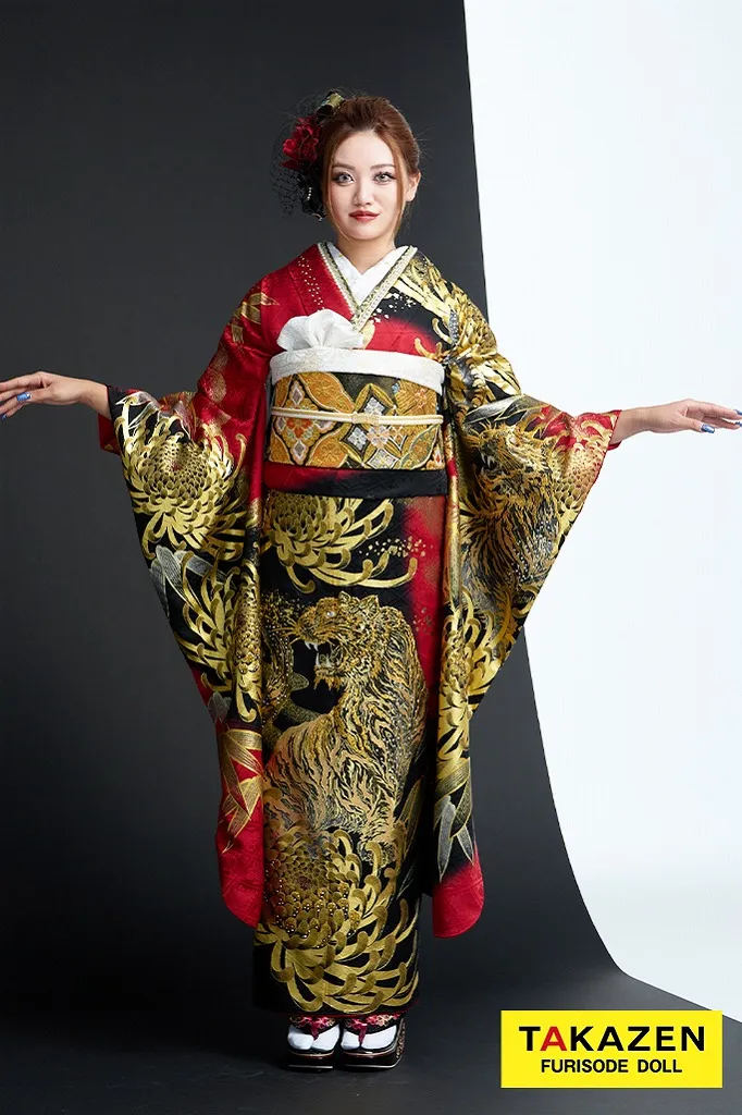 ジャパンモード誰かの色になんて染まらない。自分を貫きわが道へ。柄×箔と一番目立つ派手で渋い孔雀・鳳凰・龍・虎・鯉のいかつい柄でかっこよく。ゴージャスで大人気のキラキラ振袖シリーズ。