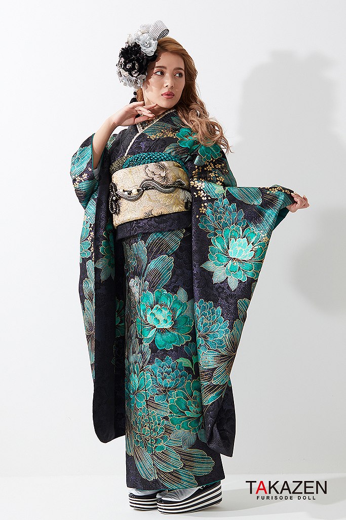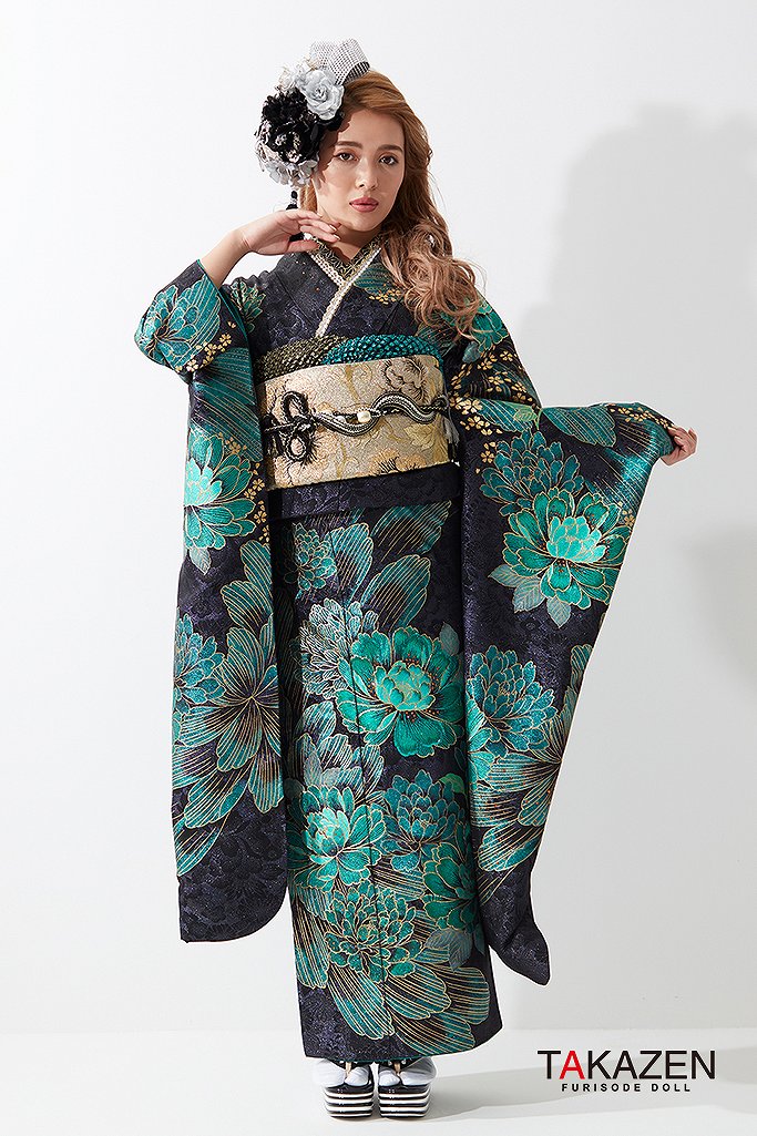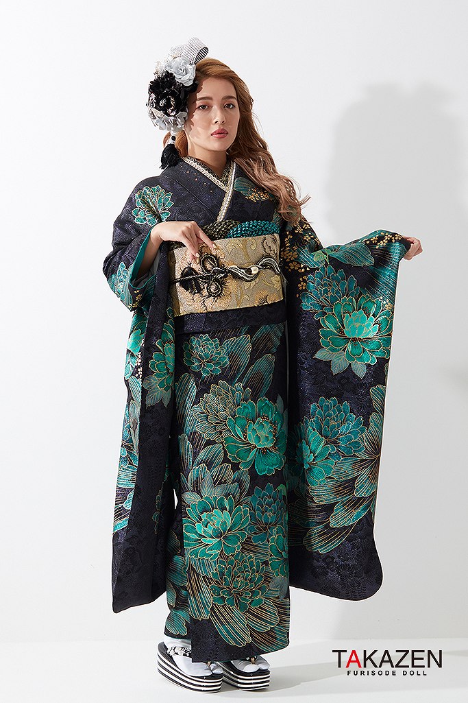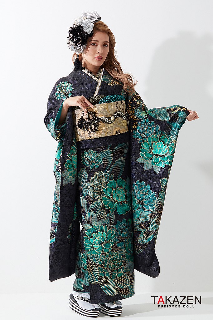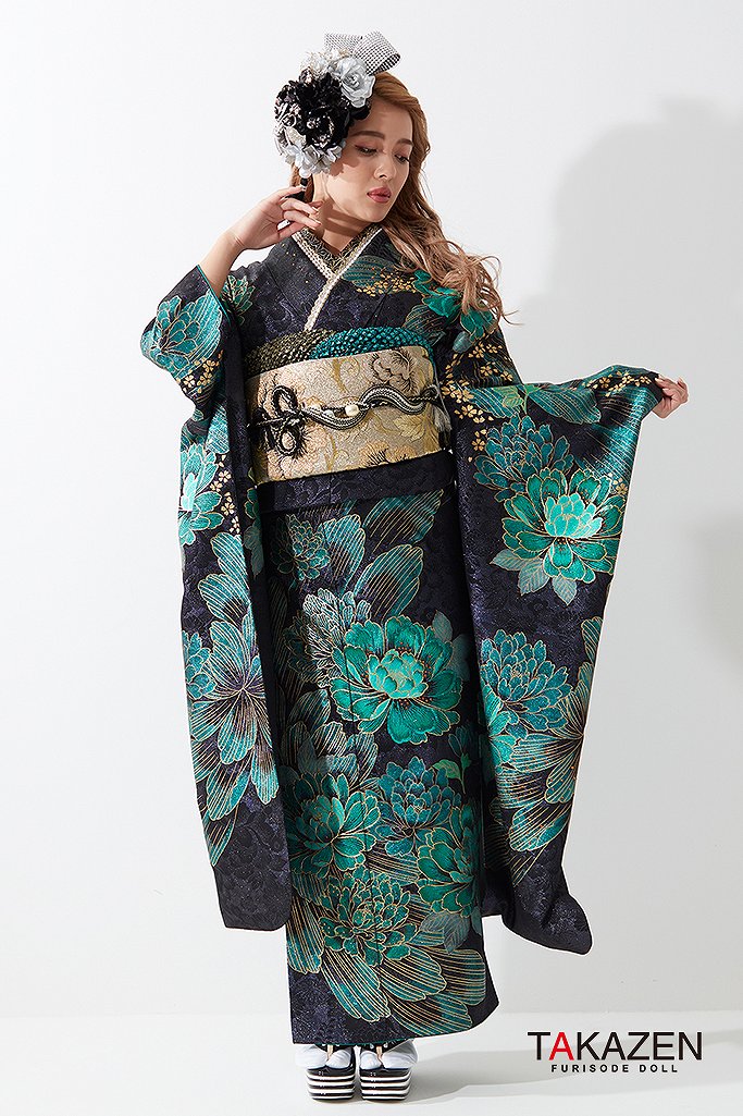 ジャパンモード誰かの色になんて染まらない。自分を貫きわが道へ。柄×箔と一番目立つ派手で渋い孔雀・鳳凰・龍・虎・鯉のいかつい柄でかっこよく。ゴージャスで大人気のキラキラ振袖シリーズ。