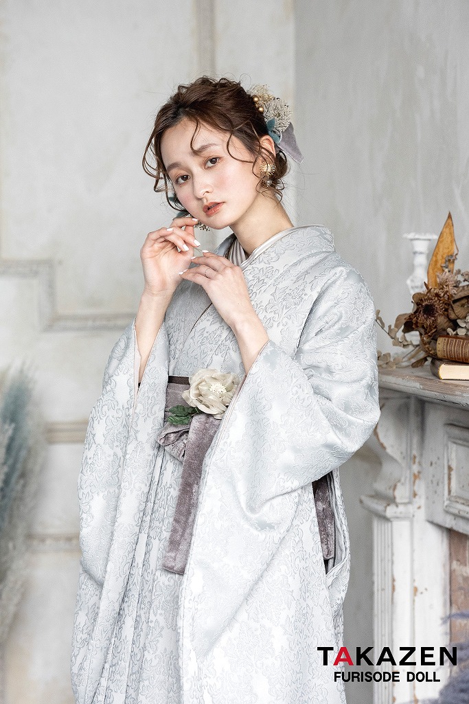 くすみカラー大人気のくすみカラー振袖でずっとかわいい女の子でいたい。儚げな淡い色合いが透明感を引き出してくれる。トレンドに敏感なおしゃれな女の子にぴったり♡