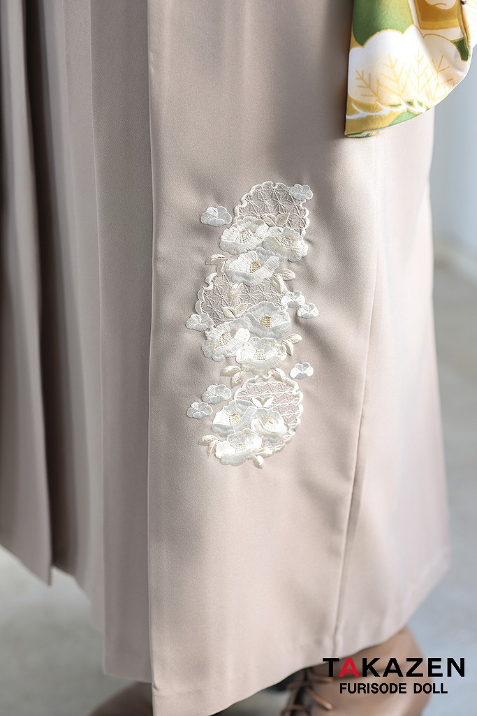 二尺袖の場合、重ね袴は元々小振袖に縫いつけられている伊達衿となります。