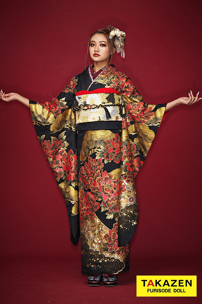 ジャパンモード誰かの色になんて染まらない。自分を貫きわが道へ。柄×箔と一番目立つ派手で渋い孔雀・鳳凰・龍・虎・鯉のいかつい柄でかっこよく。ゴージャスで大人気のキラキラ振袖シリーズ。