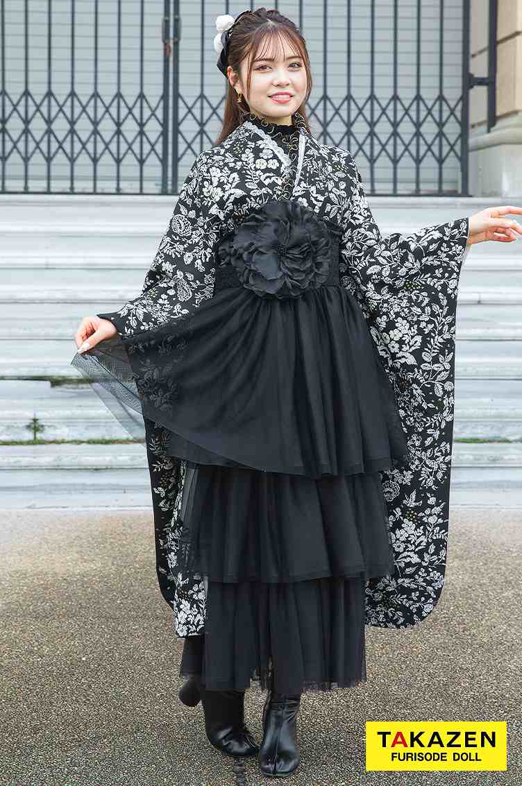 ブラックレーベルオートクチュールドレスのように気高くエレガント。ヨーロッパハイブランドから取り入れたテイストやデザインを、高級ドレス仕立の素材で。すべてにワンランク上の贅を尽くし、新しい価値観から生まれた世界でここにしかない振袖が誕生