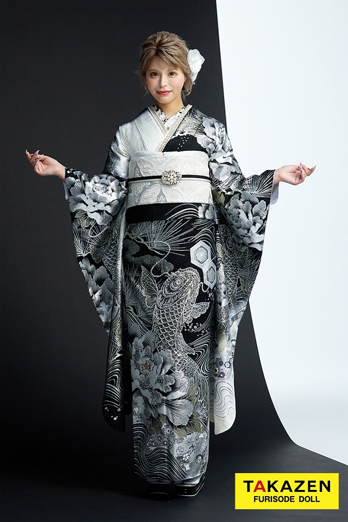 ジャパンモード誰かの色になんて染まらない。自分を貫きわが道へ。柄×箔と一番目立つ派手で渋い孔雀・鳳凰・龍・虎・鯉のいかつい柄でかっこよく。ゴージャスで大人気のキラキラ振袖シリーズ。