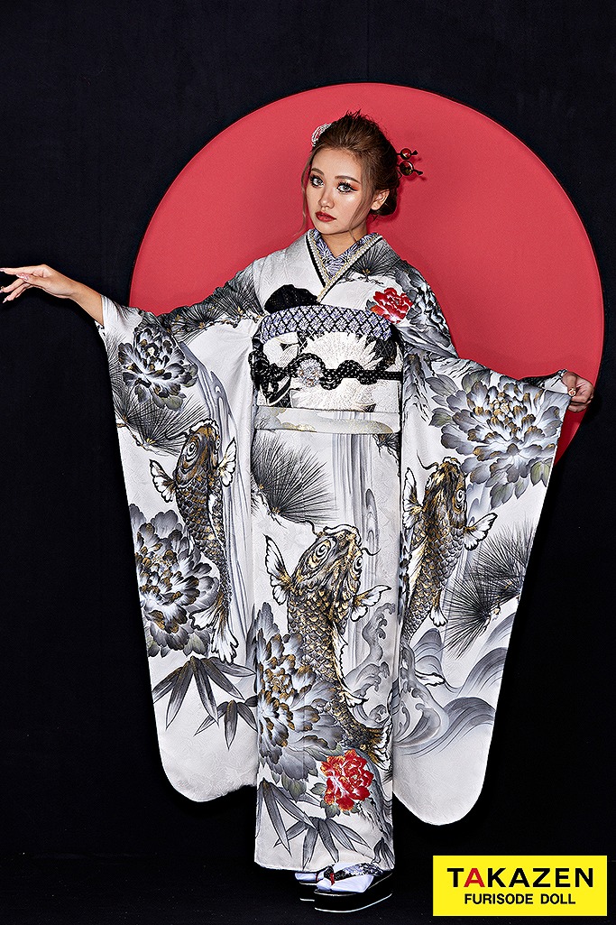 ジャパンモード誰かの色になんて染まらない。自分を貫きわが道へ。柄×箔と一番目立つ派手で渋い孔雀・鳳凰・龍・虎・鯉のいかつい柄でかっこよく。ゴージャスで大人気のキラキラ振袖シリーズ。