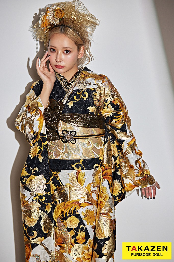 ジャパンモード誰かの色になんて染まらない。自分を貫きわが道へ。柄×箔と一番目立つ派手で渋い孔雀・鳳凰・龍・虎・鯉のいかつい柄でかっこよく。ゴージャスで大人気のキラキラ振袖シリーズ。